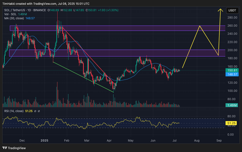 Vahva kesäralli voi siivittää SOL:n 300 dollarin tasolle jo syksyyn mennessä, ja vuoden loppuun mennessä nousu 500 dollariin näyttää mahdolliselta.