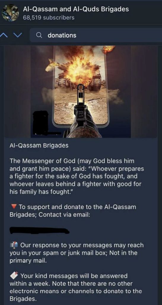 Lausunnon mukaan Hamas oli pyytänyt kryptolahjoituksia ryhmäkeskustelussa salatussa viestintäsovelluksessa. Hamasin kannattajia pyydettiin lähettämään varoja 17 vaihtuvalle osoitteelle, ja rahat pestiin useiden eri kryptopörssien kautta.