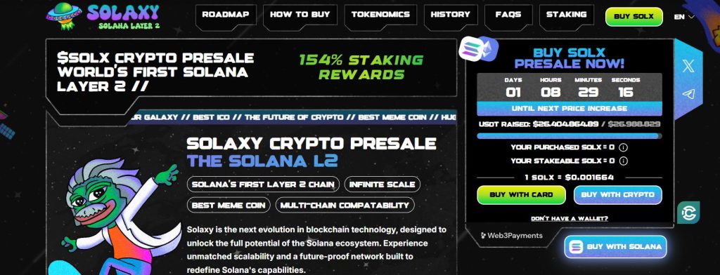 Ennakkomyynti on kerännyt jo yli 26,4 miljoonaa dollaria, ja nopeasti kasvava yhteisö nostaa Solaxyn asemaa potentiaalisena pelin muuttajana lohkoketjuteknologian skaalautuvuuden saralla.