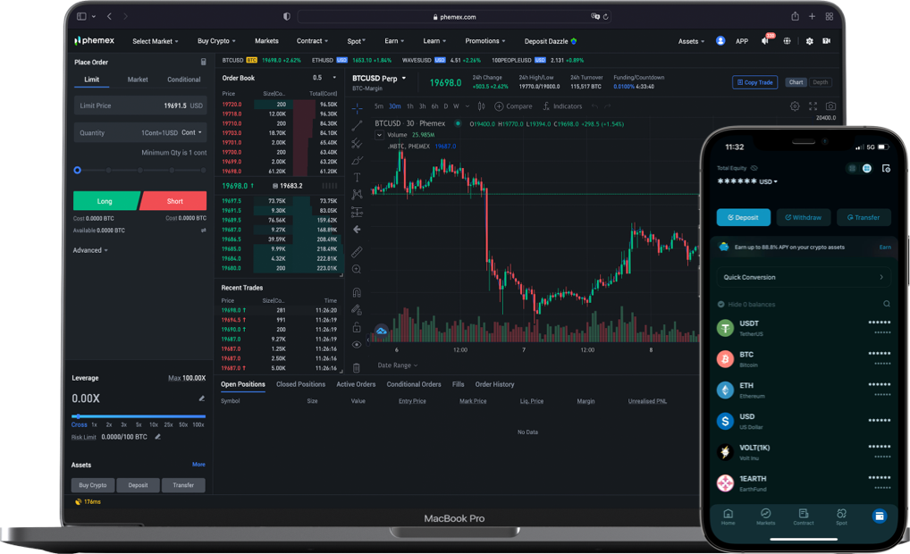 Phemexin kaupankäyntialusta on kehitetty tekemään kaupankäynnistä yksinkertaista, jotta se sopisi sekä aloitteleville että kokeneille kauppiaille.