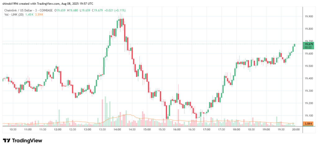 Les 24 dernières heures ont été le théâtre d’une remontée exceptionnelle pour Chainlink. LINK, sa crypto-monnaie native, a bondi de près de 15 %, s’inscrivant dans le vert sur toutes les périodes de référence.