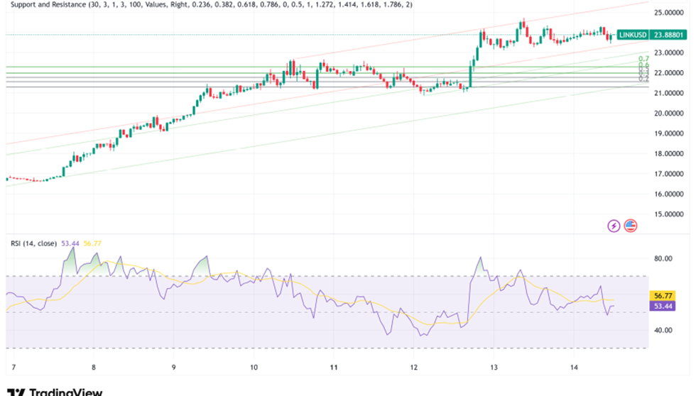 - Chainlink (LINK) S’envole de 15 % : en marche pour les 25 $