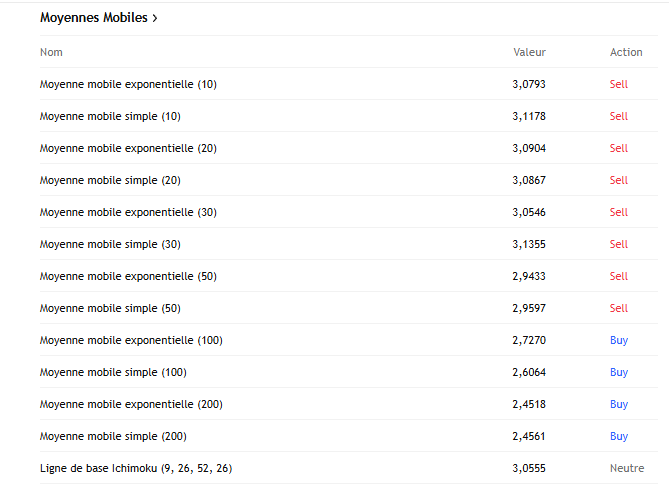 Seul point positif : l’EMA 50 a croisé au-dessus de l’EMA 200, signal connu sous le nom de golden cross. Théoriquement haussier, il ne joue pourtant pas son rôle car le prix évolue déjà sous le 50 jours. Résultat : ce signal pourrait s’avérer un simple piège pour les acheteurs trop pressés.