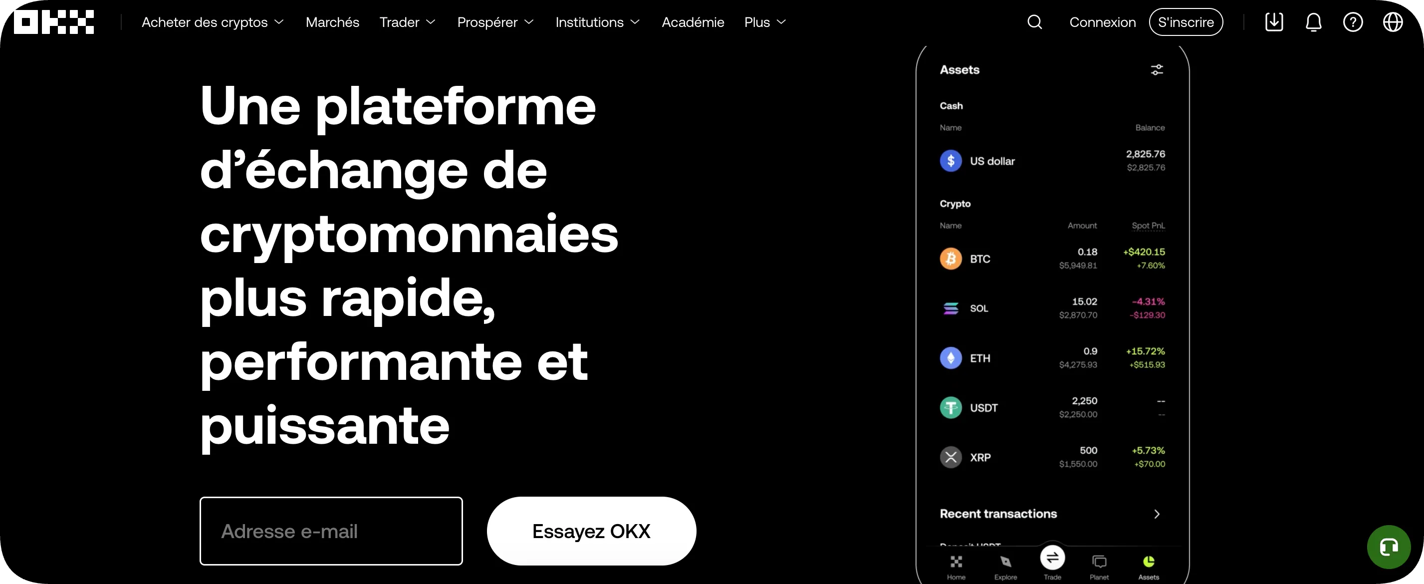 - OKX : riche en outils professionnels et très liquide, idéal pour les traders expérimentés.
