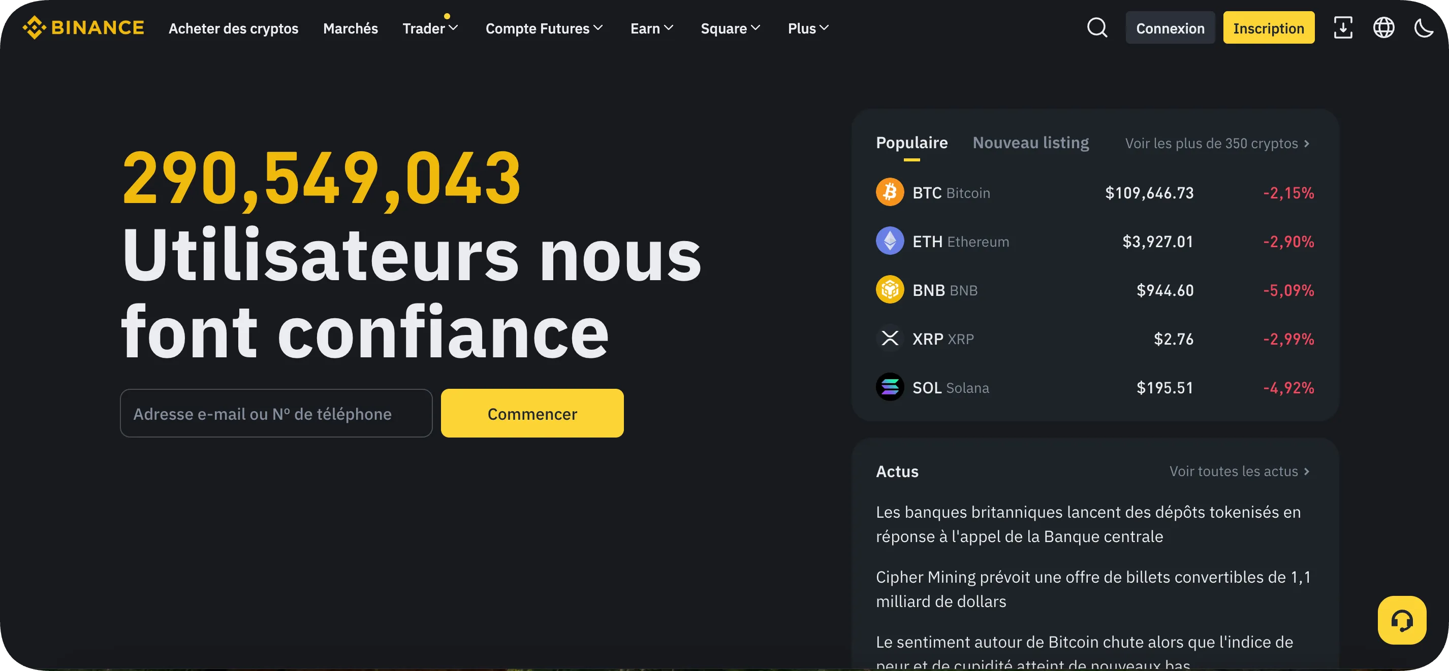 - Binance : géant du secteur avec sécurité robuste et large choix de marchés.