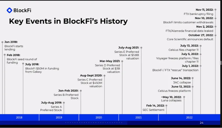 Selon les avocats de BlockFi, il est clair que l’effondrement de Terra fut le 1erdomino d’une désormais longue série. Lorsque la monnaie stable UST de Terra a perdu sa parité avec le dollar américain, 40 milliards de dollars de fonds ont disparu. Dans les mois qui ont suivi, il est apparu évident que le fonds spéculatif Three Arrows Capital avait une surexposition à Terra. En conséquence, le courtier Voyager Digital a émis un avis de défaut de paiement pour 661 millions de dollars de dettes impayées que lui devait 3AC. Quelques jours plus tard, le fonds spéculatif se plaçait en faillite. Puis, Voyager a emboité le pas dans la semaine suivante. Celsius Network était entrainé dans la vague quelques jours plus tard. BlockFi était également exposé à 3AC, mais a réussi à rester en activité grâce à la ligne de crédit renouvelable qu’elle a reçue de FTX. La faillite de FTX fut du coup le dernier clou dans le cercueil pour l’entreprise.