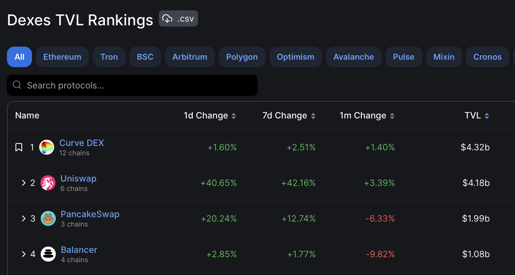 Les données disponibles indiquent que Curve Finance est solide. Selon les données de DefiLlama, Curve Finance est le premier DEX, avec une valeur totale verrouillée d’environ 4 milliards de dollars.