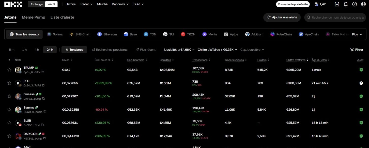 OKX permet aussi de trader des altcoins populaires en forte croissance comme :