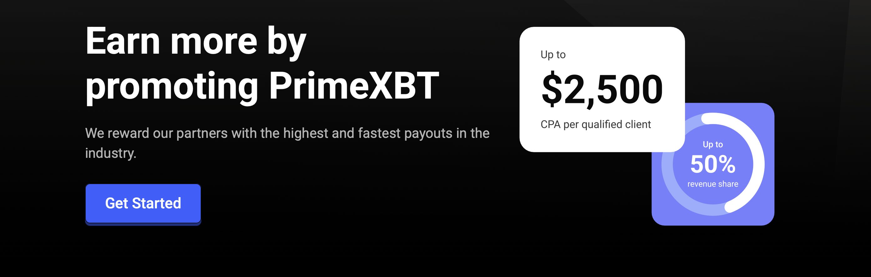 La plateforme crypto PrimeXBT propose un programme d’affiliation unique en son genre en permettant aux affiliés d’obtenir jusqu’à 70 % des frais en optant pour le modèle de partage des revenus ou jusqu’à 2 500 dollars par client avec leur programme PCA, faisant varier les récompenses selon le montant de dépôt.