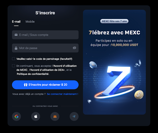 Vous vous demandez comment s’inscrire sur une programme d’affiliation ? Nous allons vous proposer dans cette partie un petit tutoriel, vous guidant pas à pas dans le processus avec la plateforme d’échange crypto MEXC.