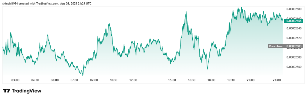Jusqu’en fin d’après midi, le 7 août dernier, BONK se trouvait dans une zone de repli avec un cours descendu jusqu’à 0,00002485 $. Ensuite, le token entame un rebond qui le mène tout près de 0,00002645 $ dans la matinée européenne de ce vendredi.
