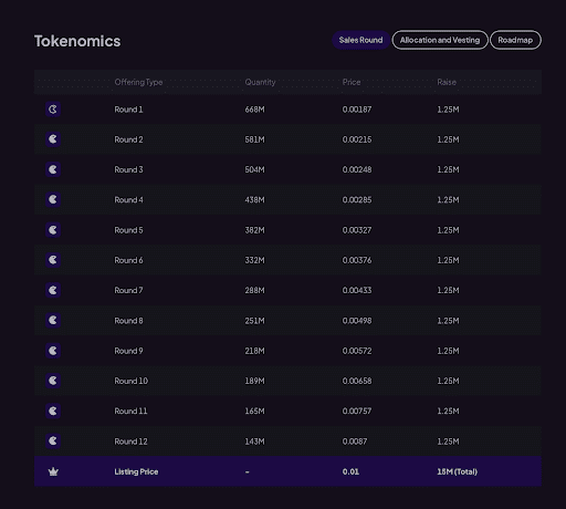 En tant que jeton ERC20, le jeton est compatible avec les plateformes DeFi et les contrats intelligents existants, ce qui améliore son accessibilité et son utilité. La prévente du jeton présente une structure de prix qui augmente progressivement tout au long des tours.