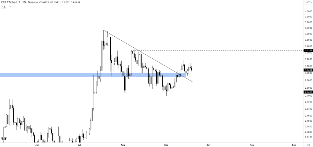 Pendant ce temps, XRP oscille autour des 3 dollars, ce qui est une très bonne nouvelle. D’autant plus, ayant opéré un pullback sur ce pivot technique en milieu de semaine, faisant suite au franchissement d’une résistance oblique, le jeton natif de Ripple est en très bonne posture pour de nouveaux sommets.