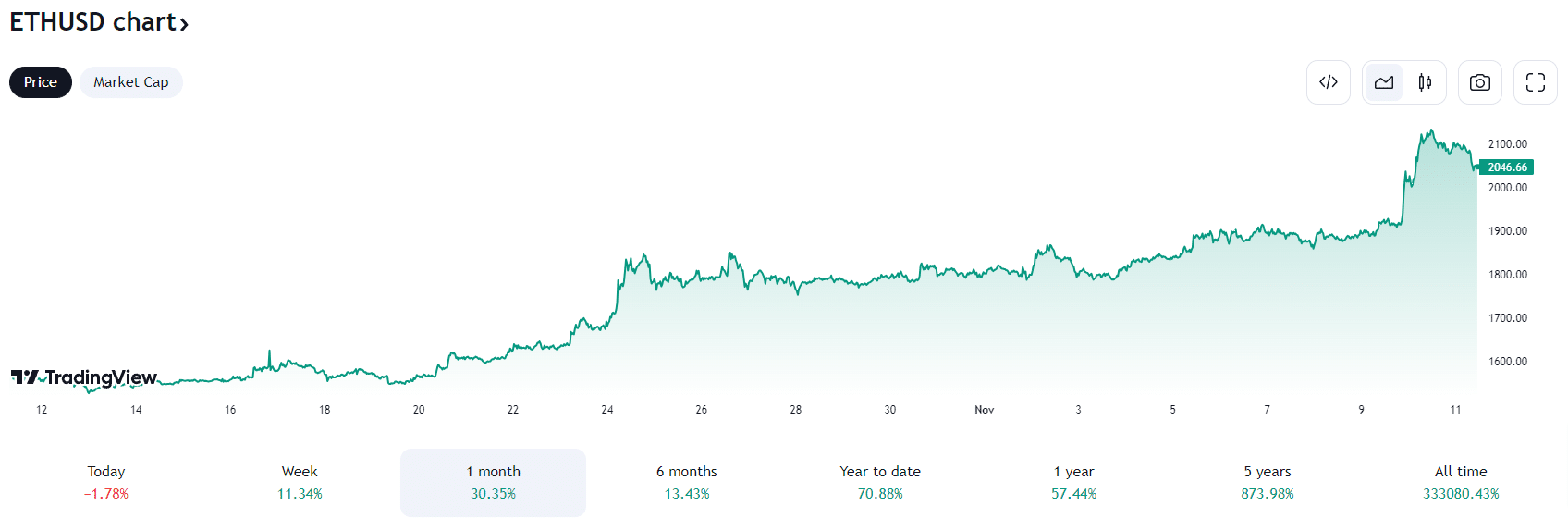 Current price: $2,060 pic.twitter.com/kx6yZVEY2k— Ethereum Fear and Greed Index (@EthereumFear) November 11, 2023