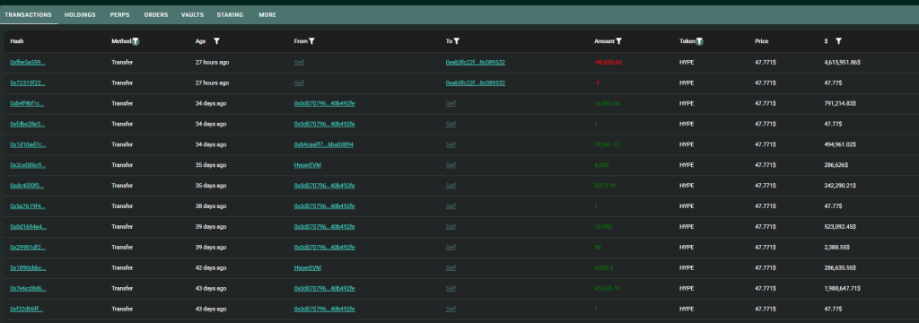 Si l’on en croit les données HypurrScan, Hayes est manifestement dans une logique de prise de bénéfice. La vente de ses 96 628 HYPE, lui a permis de réaliser une plus-value de 19,2 %. Un gain modeste en pourcentage mais conséquent en valeur absolue.