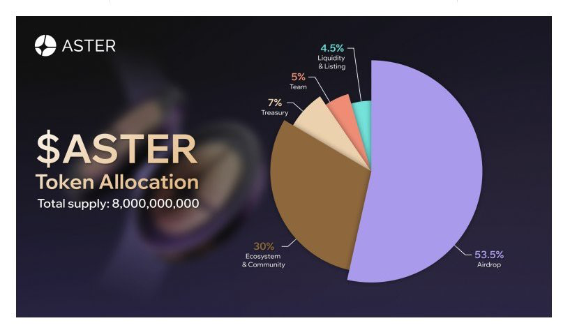 Si $ASTER connaît d’aussi belles performances, c’est en raison de l’influence d’Hyperliquid dans la conception des tokenomics. Plus de la moitié de l’offre totale en circulation sera dédiée pour les incitations à la communauté (airdrop) tandis que l’équipe ne récolte que 5 % des jetons. Ainsi, c’est un véritable pari sur l’avenir, dans la volonté de prendre le même chemin que le DEX originaire d’arbitrum.