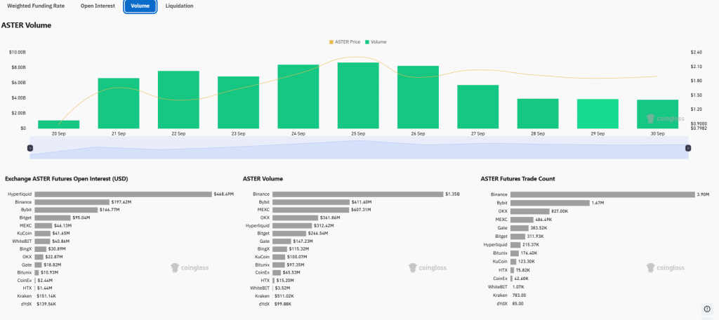 Aster n’a pas seulement battu HyperLiquid, il l’a écrasé en volume. Ce rapport de 8 pour 1 suggère que les traders considèrent déjà la plateforme comme plus attractive. L’écart est tel qu’il pourrait redessiner la carte de la concurrence dans la DeFi.