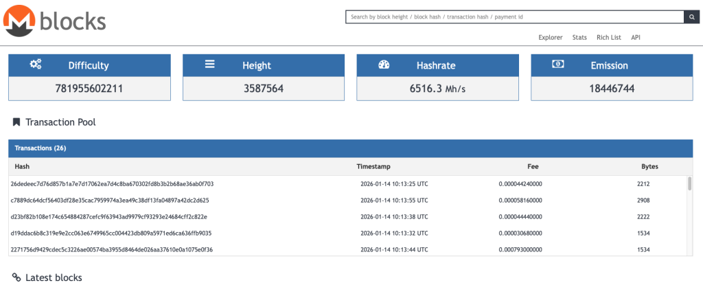 Au-delà du prix, les métriques réseau donnent du relief au récit. Sur les dernières 24 heures observées, Monero a traité environ 37 000 transactions, avec des frais moyens autour de 0,00052 XMR, soit environ 0,36 $ au cours du moment. Le réseau continue aussi d’afficher une puissance de calcul robuste, avec un hashrate autour de 6,4 à 6,5 GH/s et une difficulté proche de 800 G.