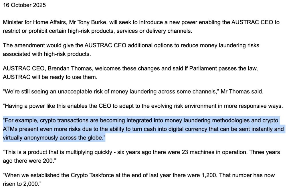 Selon AUSTRAC, la majorité des transactions de forte valeur sur ces machines est liée à des arnaques ou à des réseaux de « money mules ». Les autorités veulent pouvoir geler ou fermer un segment sans attendre un long cycle législatif.