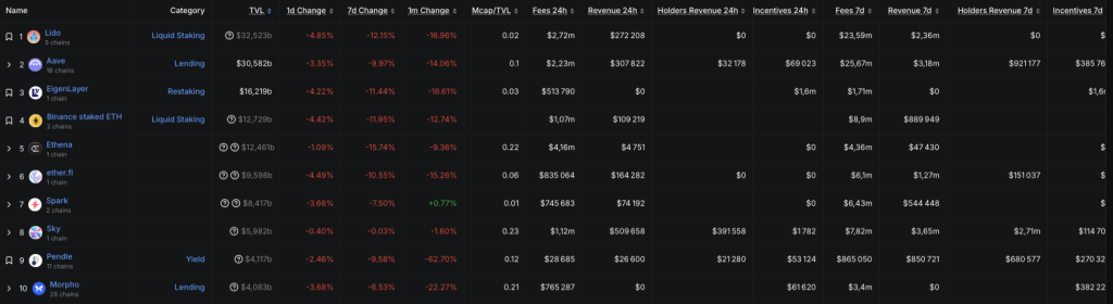 Avec une TVL respective de 30 milliards de dollars et 9,5 milliards de dollars (données DeFiLlama), ces deux géants marquent des revenus sur les 24 heures qui dépassent très largement les 100 000 dollars. Idéal pour soutenir le cours de leurs jetons natifs.