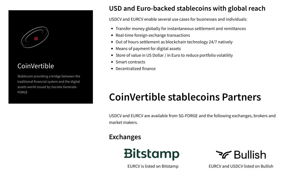 Au-delà de l’annonce réalisée par la banque français Oddo BHF, nous retrouvons également le géant Société Générale, en plein dans la course avec son EUR CoinVertible (EURCV), un stablecoin adossé à l’euro, lancé via la filiale SG-Forge. Ce déploiement fait suite à l’obtention de la licence EMI (Institution de Monnaie Électronique), permettant d’opérer légalement sur le territoire européen.