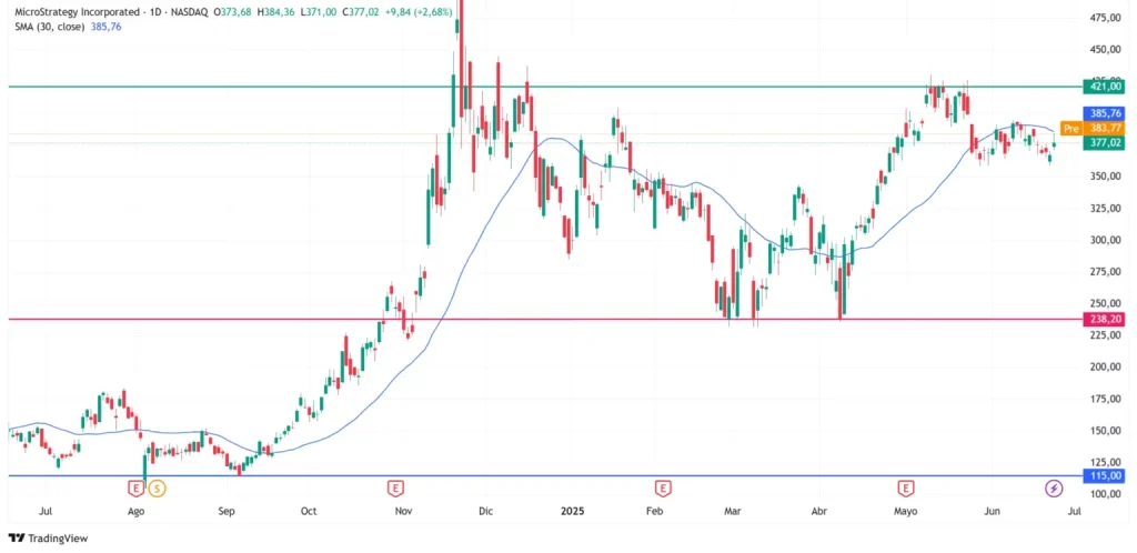 Graphique du cours de bourse de l’action MicroStrategy (Trading View)