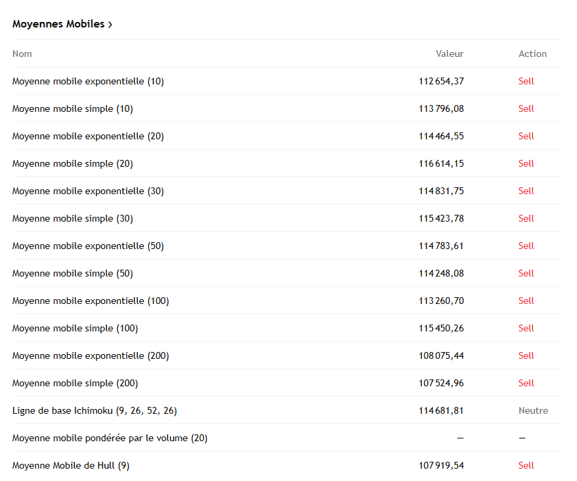 Certes il est important de mentionner le soutien historique autour de la moyenne mobile 50 semaines (près de 101 700 $). Mais les acheteurs semblent hésitants. Ce niveau, qui avait servi de socle aux précédents rebonds depuis 2023, pourrait cette fois céder. En cause, la pression combinée des ventes techniques et du manque de flux entrants institutionnels.