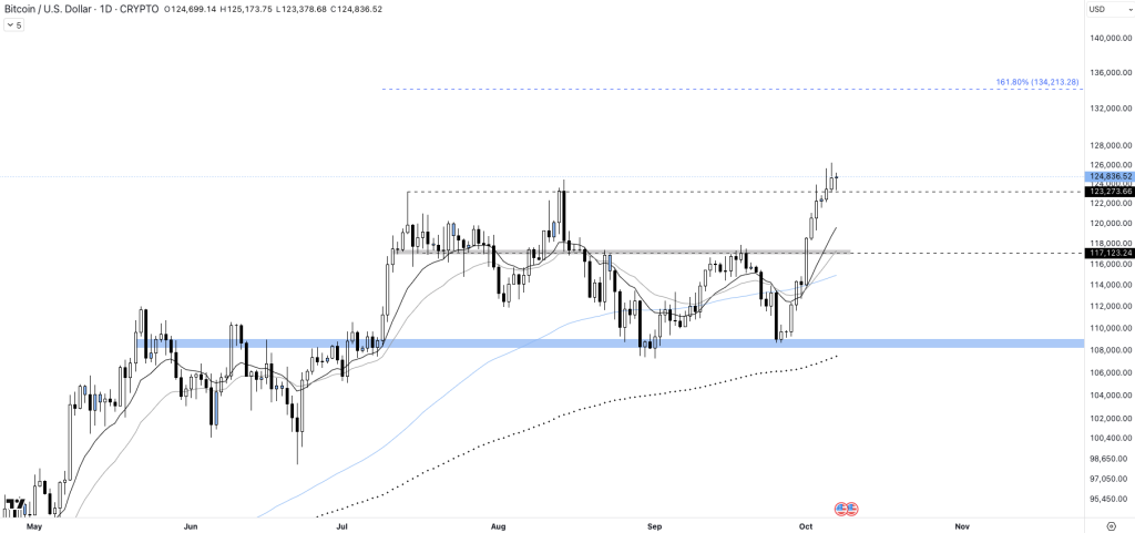 Ce début du mois d’octobre est très clairement explosif. Bitcoin marque de nouveaux sommets, franchissant en ce début de semaine les 126 000 dollars. En route pour les 130 000 dollars durant les prochains mois ? Faisons le point sur la situation et voyons les niveaux que bitcoin pourrait atteindre d’ici la fin d’année 2025.