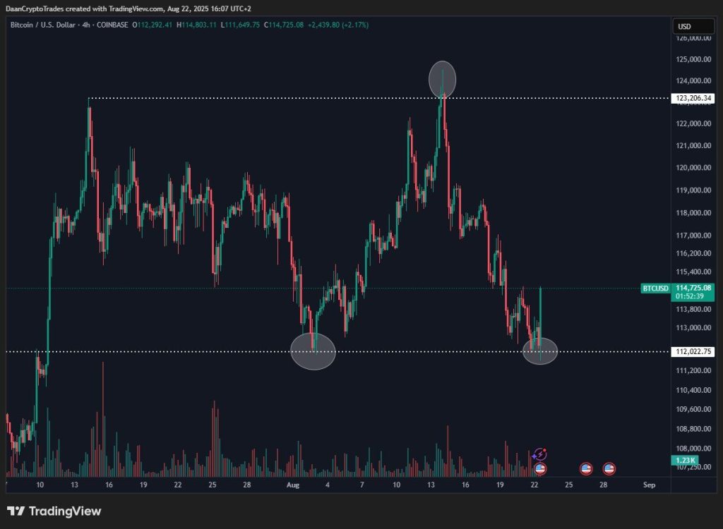 Un changement de cap à point nommé pour le BTC qui avait débuté la séance une nouvelle fois sur fond de baisse. Une chute qui l’a même conduit à tester un support clé proche de 112 000 $. Les traders surveillant de près ce niveau, la combinaison d’un RSI en zone de survente et du signal “dovish” de Powell a déclenché un mouvement brutal.