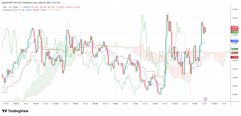 A l’opposé du Bitcoin, le XRP tient encore au-dessus de son EMA-100. Mais son évolution reste piégée dans le nuage Ichimoku. Autrement dit, le jeton navigue dans une zone d’incertitude où ni acheteurs ni vendeurs ne dominent.