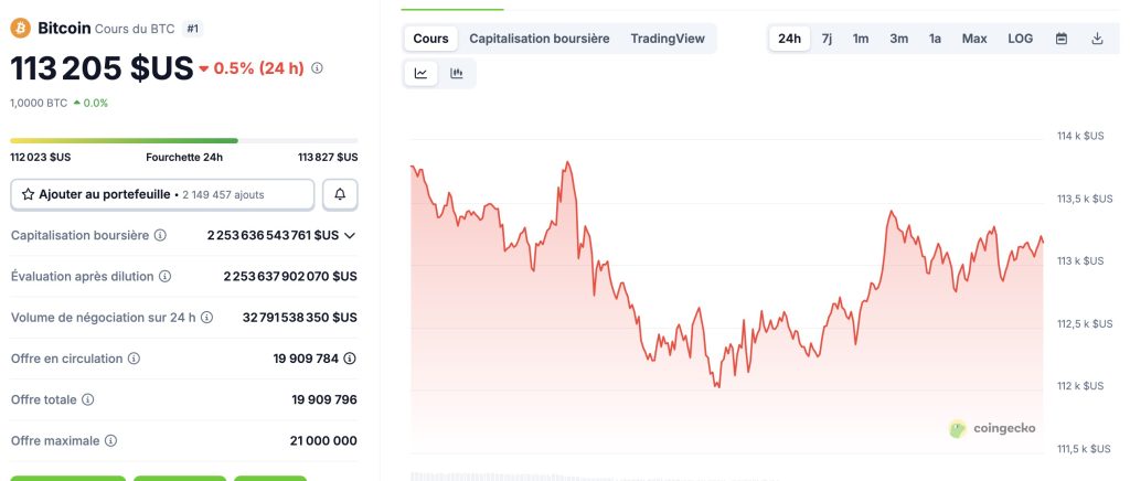 Pour l’heure, le seuil technique des 112 000 $ sert de support clé. Sa tenue ou sa rupture orientera probablement le sentiment de marché à court terme.