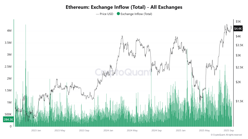 Les dépôts vers les plateformes d’échange sont en chute libre. Sur le marché BTC, la moyenne mobile sur 7 jours est passée à 25 000 BTC alors qu’elle était de 51 000 BTC en juillet. Dans le même temps, Ethereum aussi s’inscrit dans une dynamique similaire. En effet, les flux ETH ont régressé, passant à 783 000 ETH, loin des 1,8 million enregistrés à la mi-août.