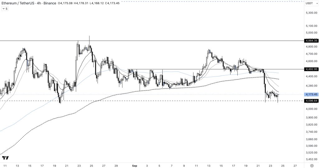 Pendant que bitcoin consolide sa position d’actif de référence à l’international, ethereum évolue à demi-teinte ces derniers jours. Depuis le mois d’août, le cours se retrouve dans un range technique entre les 4 000 dollars et l’ATH autour des 4 900 dollars. Se retrouvant actuellement sur la borne basse, après la liquidation de ce début de semaine, le cours peine à rebondir.