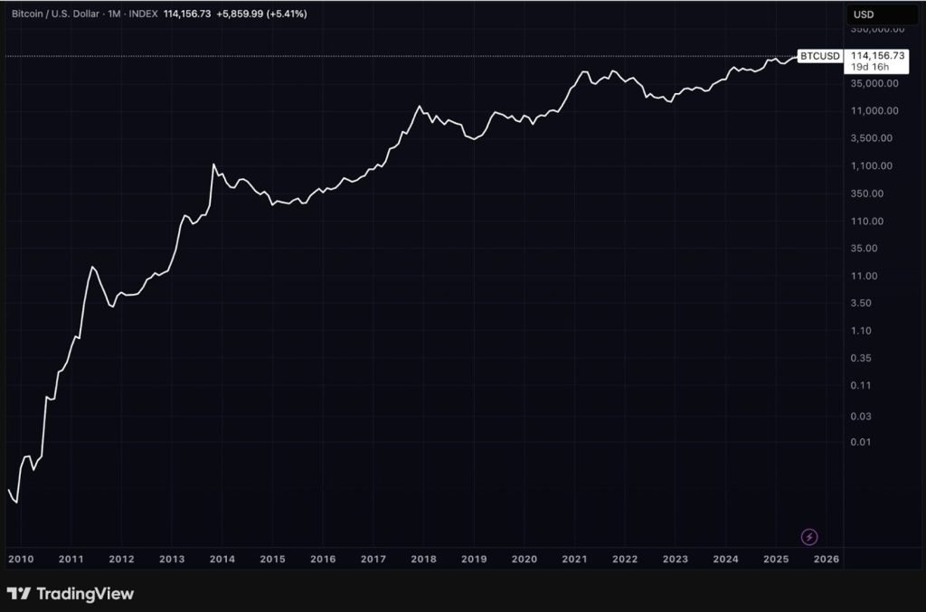 Depuis juillet 2010, une période où le BTC se négociait autour de cinq cents, son prix est monté jusqu’à 114 000 $ aujourd’hui. Cela représente un rendement vertigineux de 227 000 000 %.