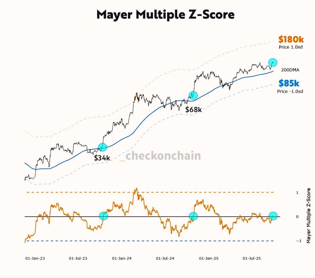 Nouvel ATH Bitcoin ? Le Mayer Multiple suggère un BTC à 180K avant la surchauffe