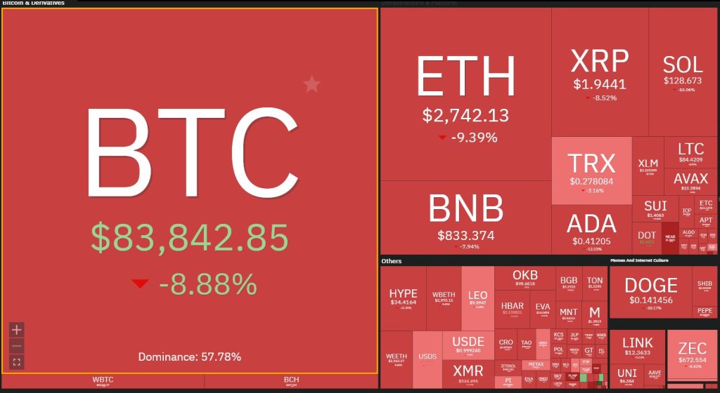 Le marché des dérivés confirme qu’un grand nettoyage est en cours. Les dernières cassures ont déclenché des liquidations massives de positions longues, forçant les acteurs les plus exposés à sortir brutalement. Quand le levier est élevé, une simple mèche suffit à provoquer un effet domino.