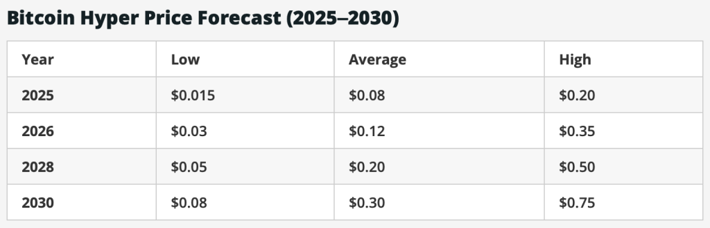 Au vu de l’ampleur de l’écosystème en construction, beaucoup jugent que HYPER pourrait valoir bien plus une fois les premières cotations en bourse de cryptoactifs lancées. L’analyste Filip Stojanovic, de Coinspeak, projette un prix autour de 0,20 $ si HYPER était listé aujourd’hui, et jusqu’à 0,35 $ en 2026, soit des gains potentiels de 1 393 % et 2 514 % par rapport au prix actuel de 0,013395 $.
