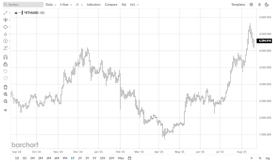 Selon Fundstrat, une dynamique pourrait porter l’ETH entre 12 000 et 15 000 dollars d’ici à fin 2025. L’équipe de recherche parle même du “plus grand trade macro des dix dernières années”. Un pari audacieux, mais révélateur de l’appétit qui se développe autour de l’actif.