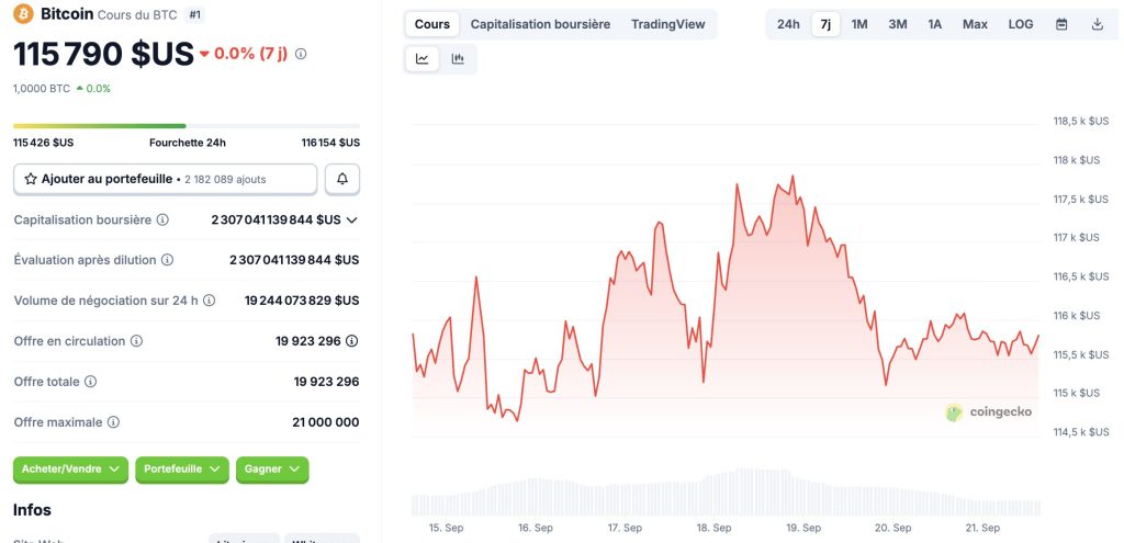 Bitcoin connaît un regain d’activité. Plus de 540 000 transactions ont été validées en 24h selon les données de CryptoQuant du 21 septembre. Ce niveau rarement atteint intervient alors que le bitcoin se maintient autour de 115 700 dollars, une zone de résistance clé. Cette intensité peut-elle soutenir une dynamique haussière qui s’installe dans la durée ?