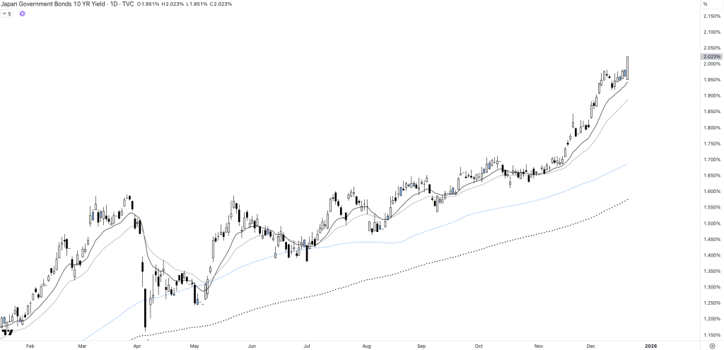 Les premiers signaux sont déjà visibles côté marchés traditionnels : le rendement de l’emprunt d’État japonais à 10 ans a dépassé les 2 %, un niveau rarement observé depuis la fin des années 1990. Pendant ce temps, la FED amorce une politique accomodante avec une baisse de taux. Ajoutez-y la fin du QT et des rachats de bons du trésor et vous obtenez un contexte favorable aux actifs à risque.