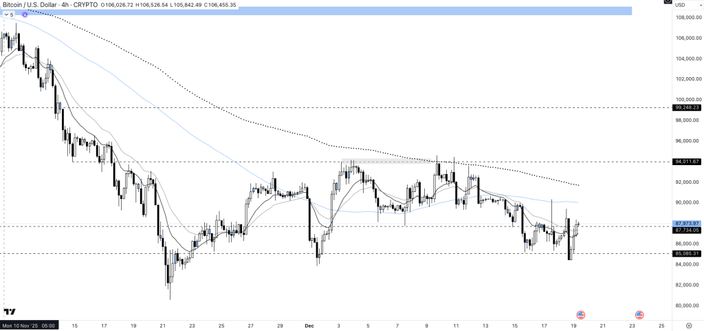 Mais l’épisode rappelle une dynamique clé pour 2025 : Bitcoin reste corrélé aux conditions financières globales. Quelques jours avant la décision, le prix était repassé de 90 000 $ à environ 85 616 $ en 48 heures. Cela, sans catalyseurs spécifiques liés à l’écosystème, ce qui renforce l’idée d’un mouvement guidé par le macro et les taux.