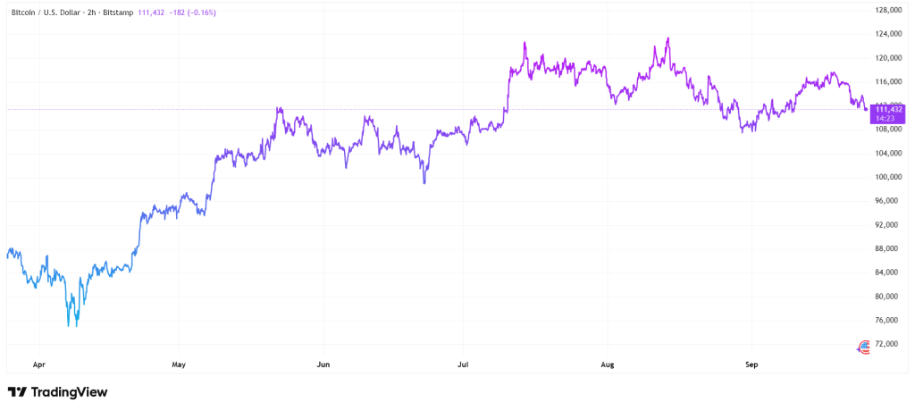 Depuis le 8 mai 2025, le prix du BTC n’a pas repassé la barre des 100k. Mieux : il a même évolué la plupart du temps entre 105 000 $ et 120 000 $, sans craquer malgré les prises de bénéfices et les annonces macro. C’est du jamais vu.