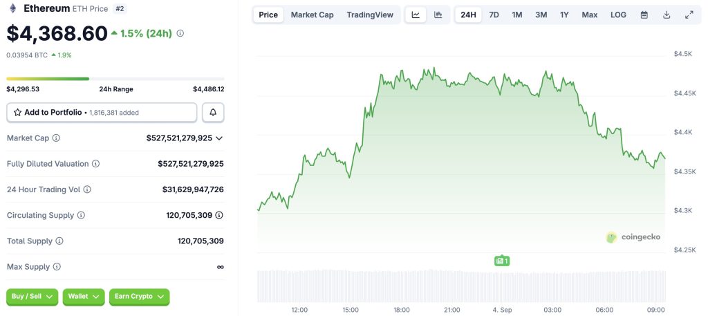 Côté ChatGPT-5, il note la solidité d’Ethereum mais également sa fragilité. Les flux ETF ont enregistré des sorties récentes : environ −135,3 M$ le 2 septembre et−38,2 M$ le 3 septembre. Si ces flux se redressent (et que la Fed s’assouplit), ETH pourra tenter un nouvel ATH pendant le bull run. Mais s’ils persistent, l’actif pourra corriger vers 4 200$ voire 4 000$.