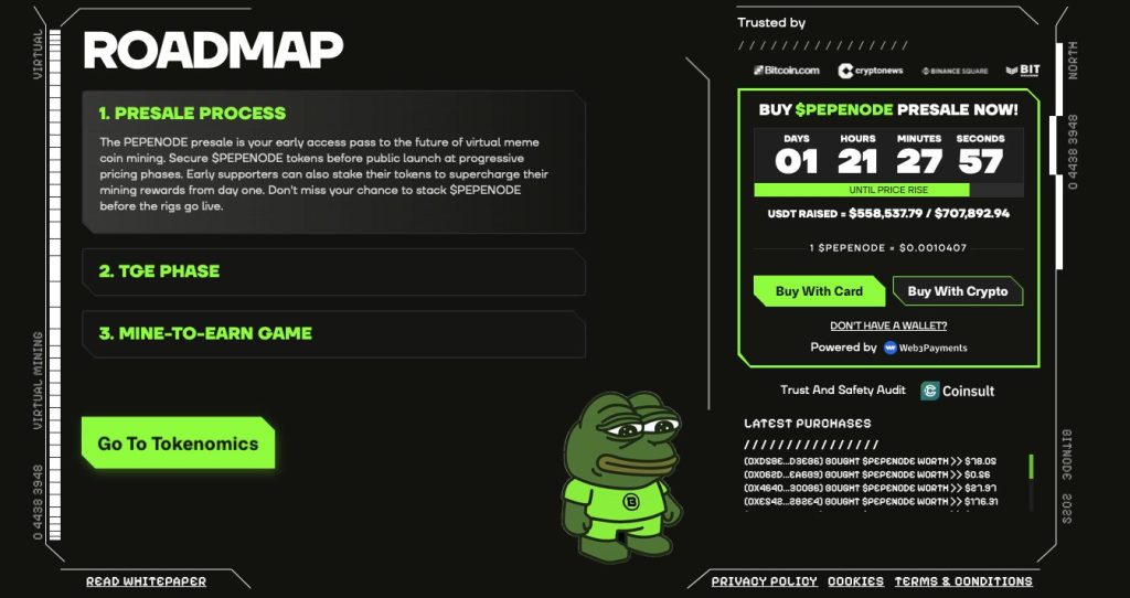 $PEPENODE a déjà levé 550 000 dollars en quelques jours. C’est la première fois qu’un memecoin permet de créer son propre rig de minage virtuel, acheter des noeuds, créer son serveur et obtenir des rendements passifs.