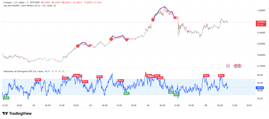 Si un tel produit voyait le jour, il ouvrirait les portes des capitaux institutionnels tout en dopant la liquidité. Techniquement, le graphique d’ADA forme en plus une figure de “cup and handle”, souvent suivie de fortes accélérations.