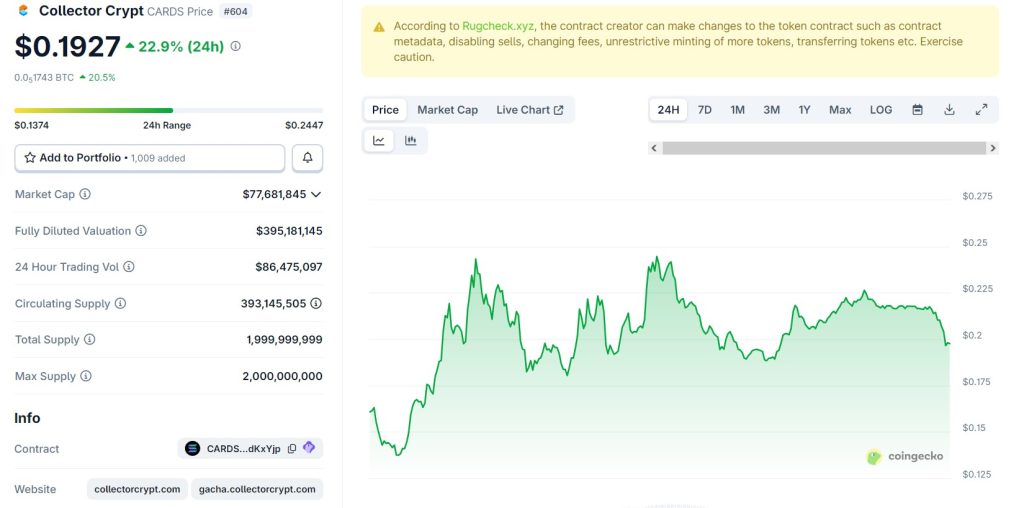 Comme toujours, les cartes Pokémon font un carton… mais cette fois, sur la blockchain. Avec CARDS, un token lancé sur Solana par la plateforme Collector Crypt, on assiste à un vrai phénomène. En quelques jours seulement, la valorisation du projet est passée de 23 millions à plus de 450 millions de dollars. Une ascension fulgurante qui a attiré aussi bien les collectionneurs nostalgiques que les traders en quête de gains rapides.