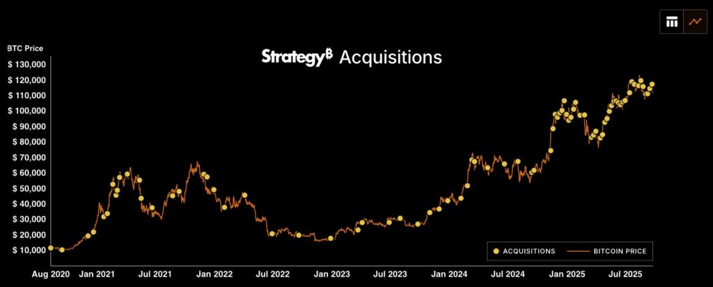 Du côté des entreprises, les trésoreries grossissent rapidement. Strategy par exemple, détient désormais 639 835 BTC après son dernier achat du 22 septembre 2025 qui était de 850 BTC à un prix moyen de 117 344 $. Metaplanet s’est aussi imposé comme un acteur majeur, devenant récemment le cinquième plus gros détenteur corporatif avec une acquisition de 633 millions de dollars.