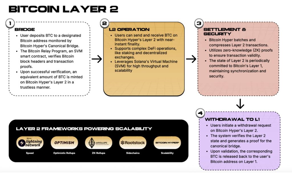Mais que se passe-t-il si le BTC ne sert plus seulement de réserve de valeur ? Que se passe-t-il s’il commence à circuler au sein des réseaux comme Solana (SOL) le fait avec la DeFi, le gaming et les NFT ? C’est exactement ça la vision de Bitcoin Hyper, devenir la première couche 2 à intégrer la Solana Virtual Machine (SVM) dans l’écosystème Bitcoin.