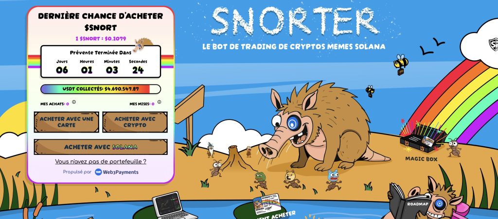 Pendant que le marché crypto peine à remonter, notamment les altcoins qui enregistrent pour certains une baisse allant au-delà des 50 %, certains projets construisent sur d’autres blockchains, notamment Solana qui se retrouve à ce jour autour des 200 dollars. Cette blockchain, connue par beaucoup comme un hub des memecoins, pourrait se laisser porter par Snorter Bot.