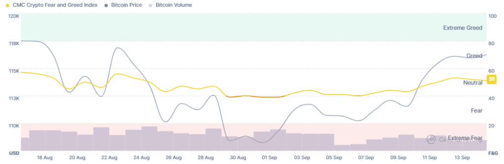 Le Crypto Fear & Greed Index reflète cette prudence : il se maintient autour de 51, entre peur et neutralité. Les investisseurs restent globalement optimistes, mais l’enthousiasme s’est émoussé.